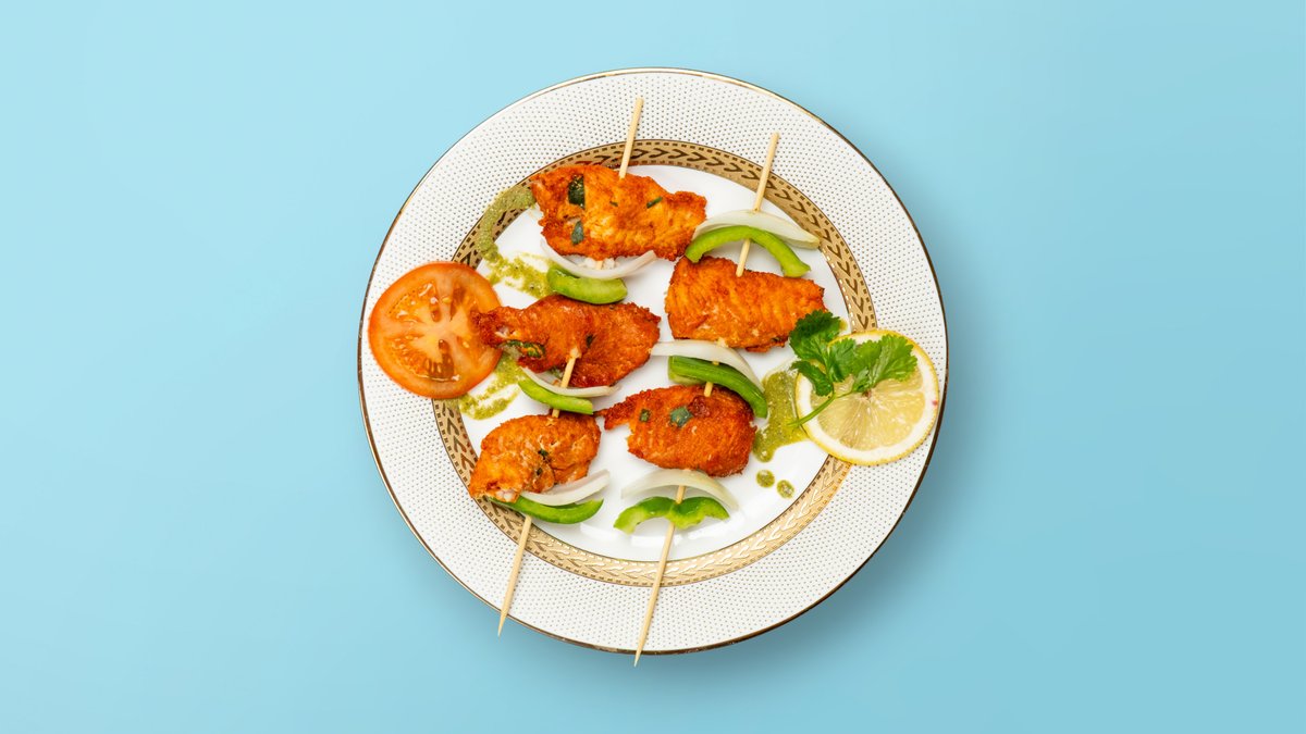 Tender fish chunks marinated in bold spices, grilled in the tandoor till golden and flaky