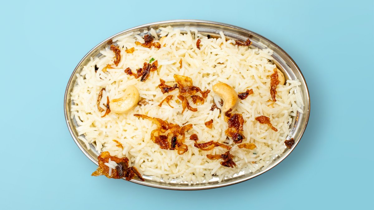 Delicate saffron rice cooked with love and a touch of ghee — subtle, fragrant, and festive