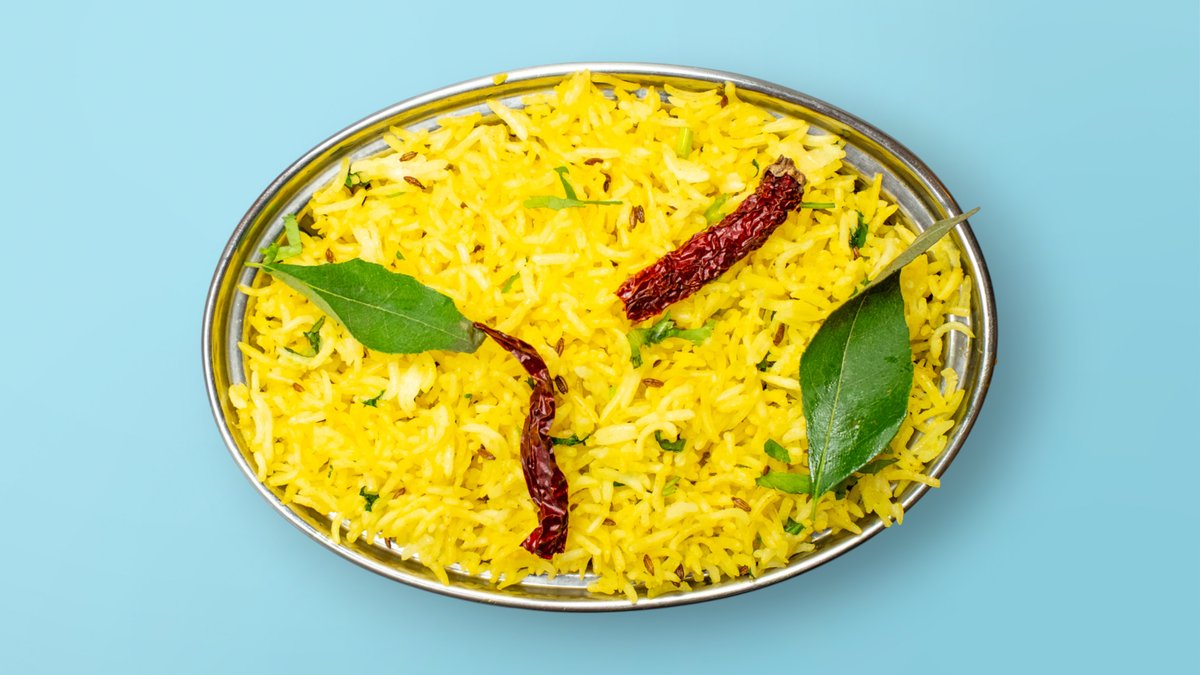 Tangy, zesty rice tossed with mustard seeds, curry leaves, and peanuts-a south indian favorite