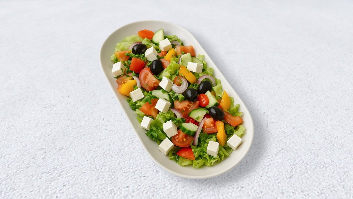 Feta, Salade, Olives, Persil, Oignons, Concombres, Poivrons, Tomates