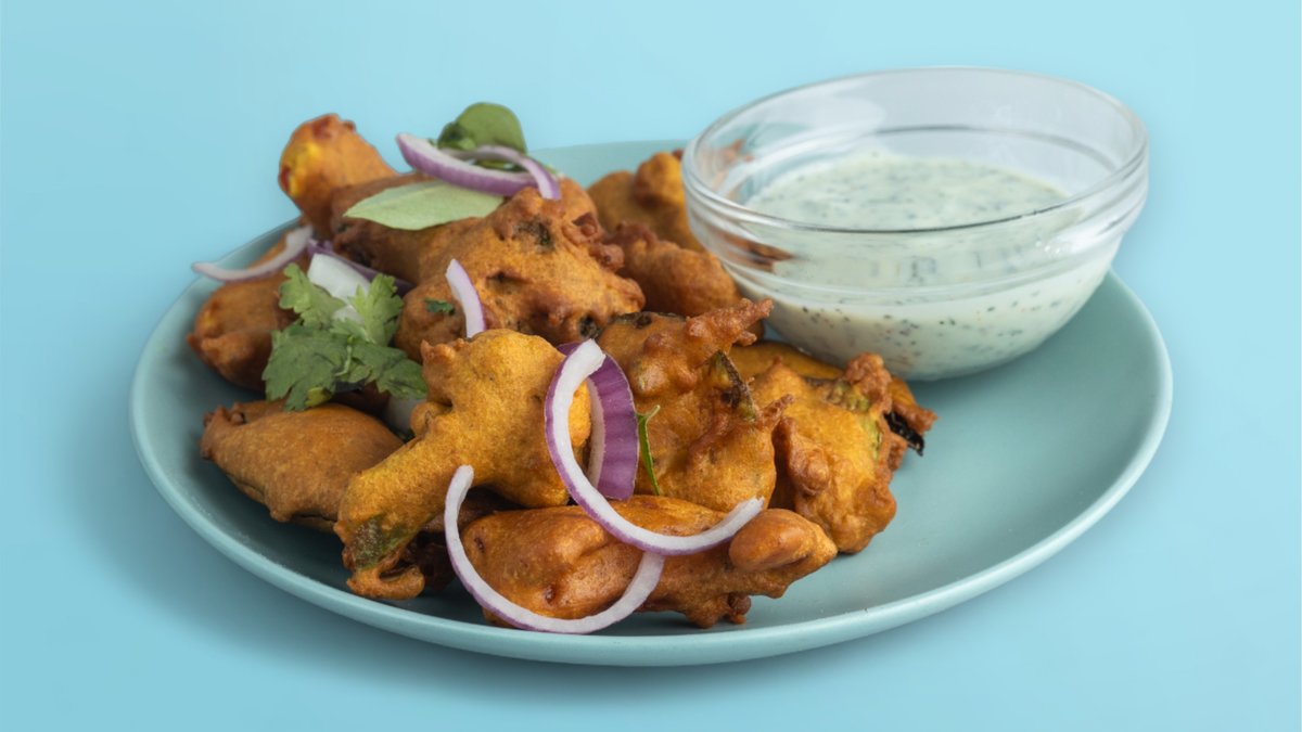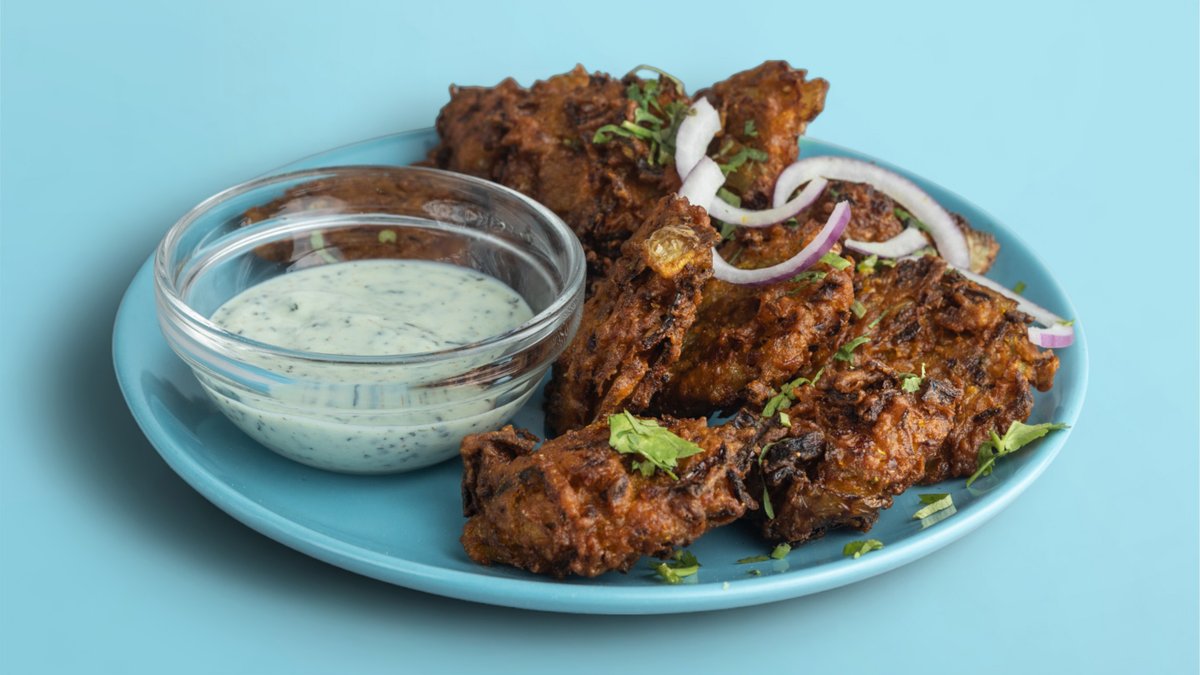 Oignons émincés frits dans une pâte épicée et parfumée faite à base de farine de pois chiches. Servis avec deux différentes délicieuses sauces indiennes.