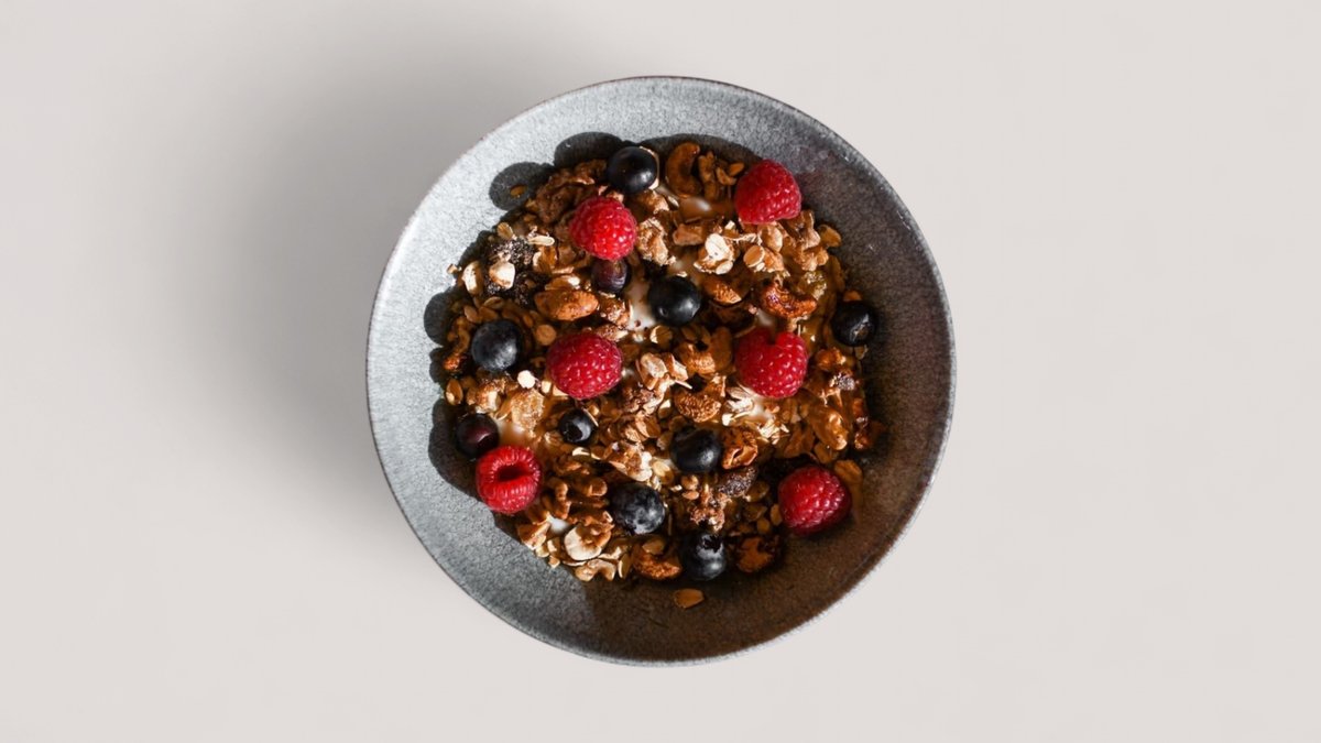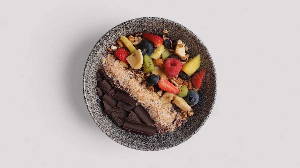 Granola maison, yaourt grec, fruits frais, sirop d'agave