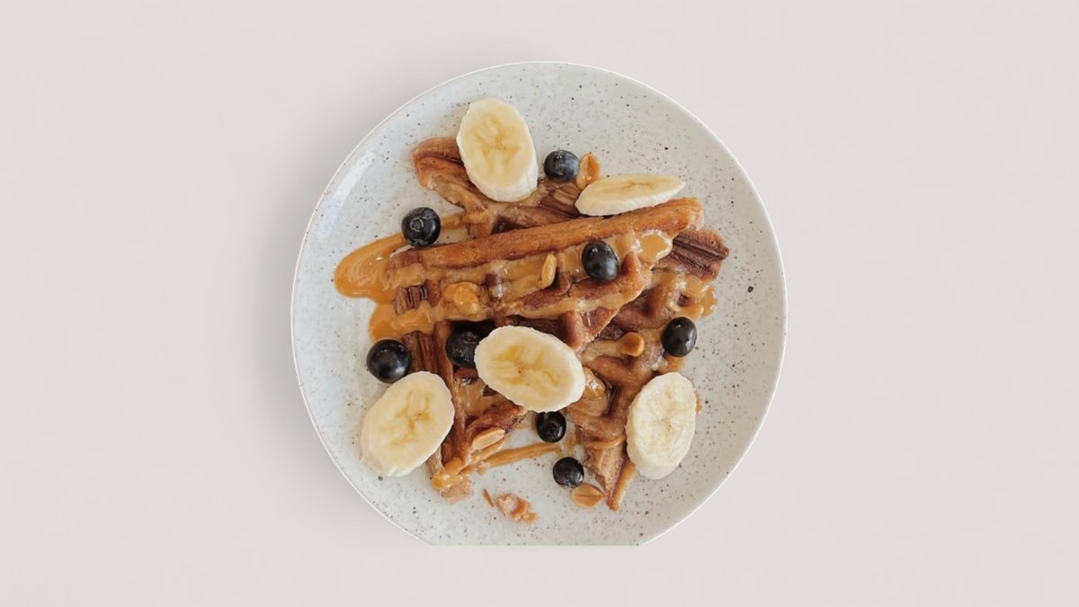 Gauffre banane, beurre de cacahuètes, sirop d'érable