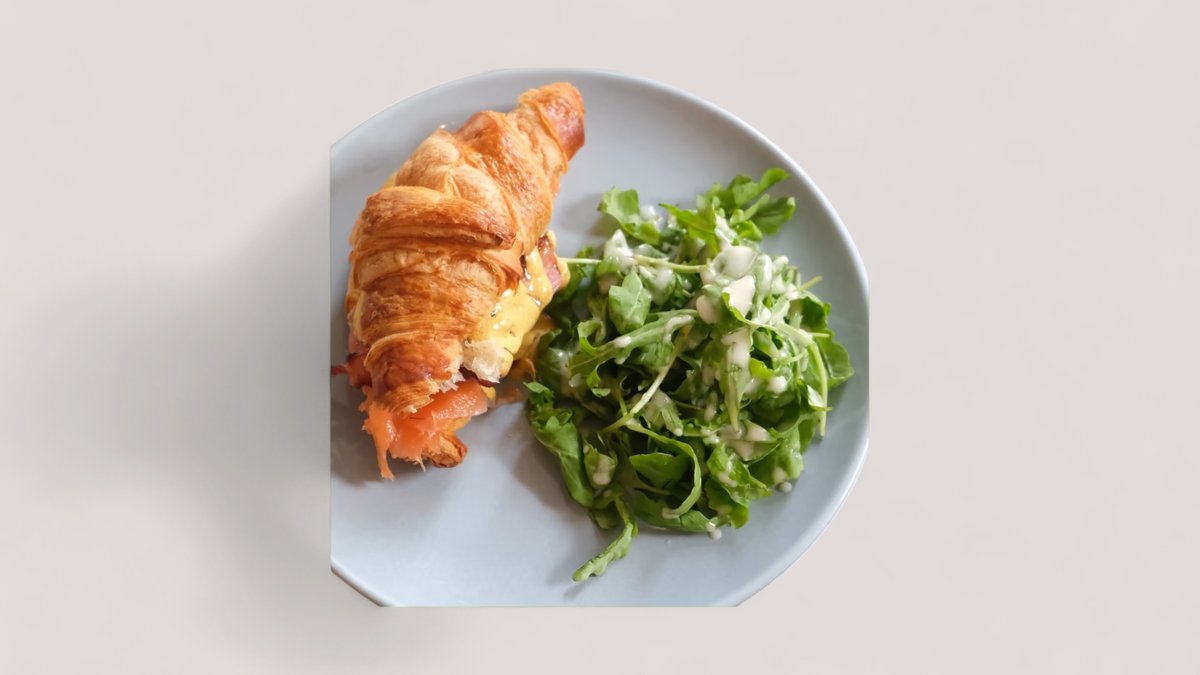 Croissant grillé, bacon, saumon fumé, oeuf poché & hollandaise