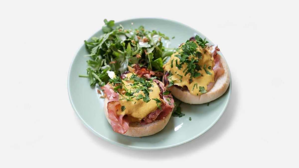 Oeufs bio luxembourgeois, hollandaise, bacon, herbes fraîches