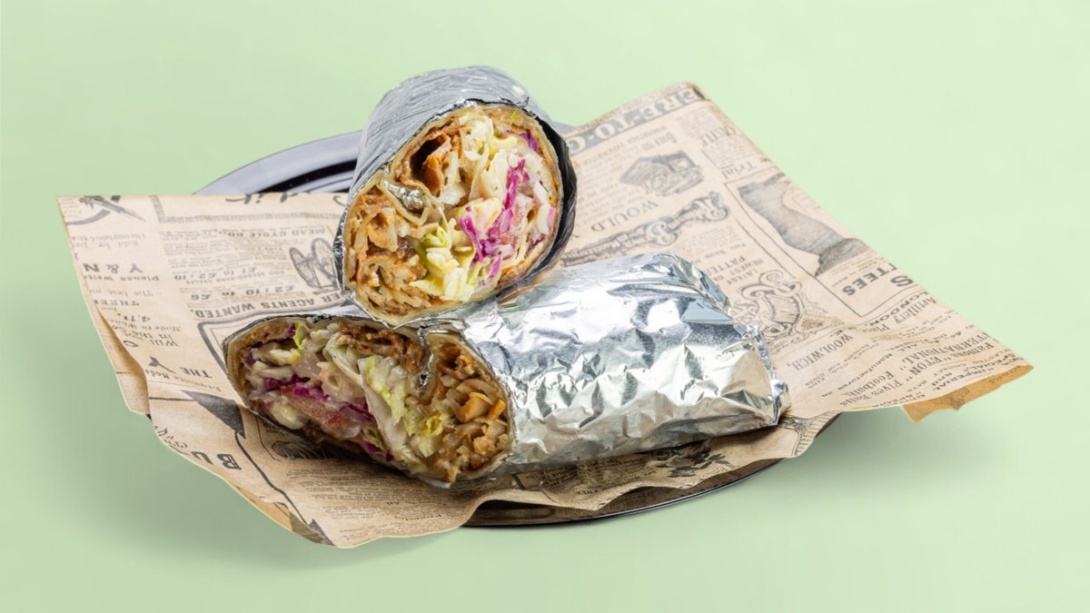 Galette fine enroulée autour de viande kebab de poulet et dinde légumes frais et sauce au choix.
