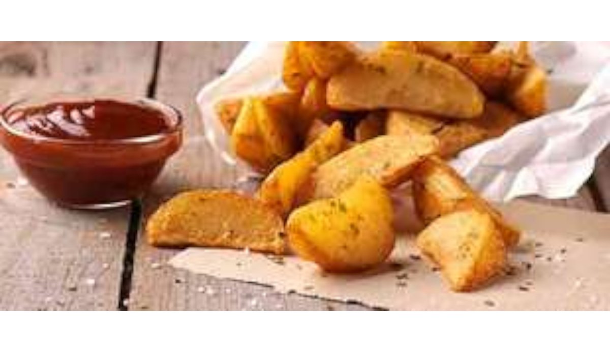 Pommes de terre à l'américaine croustillantes. Sauce au choix: ketchup, mayonnaise, barbecue ou curry mangue