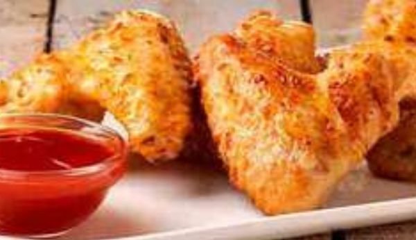 Morceaux de poulet dans une enveloppe croustillante dorée au four. Sauce au choix: ketchup, mayonnaise, barbecue