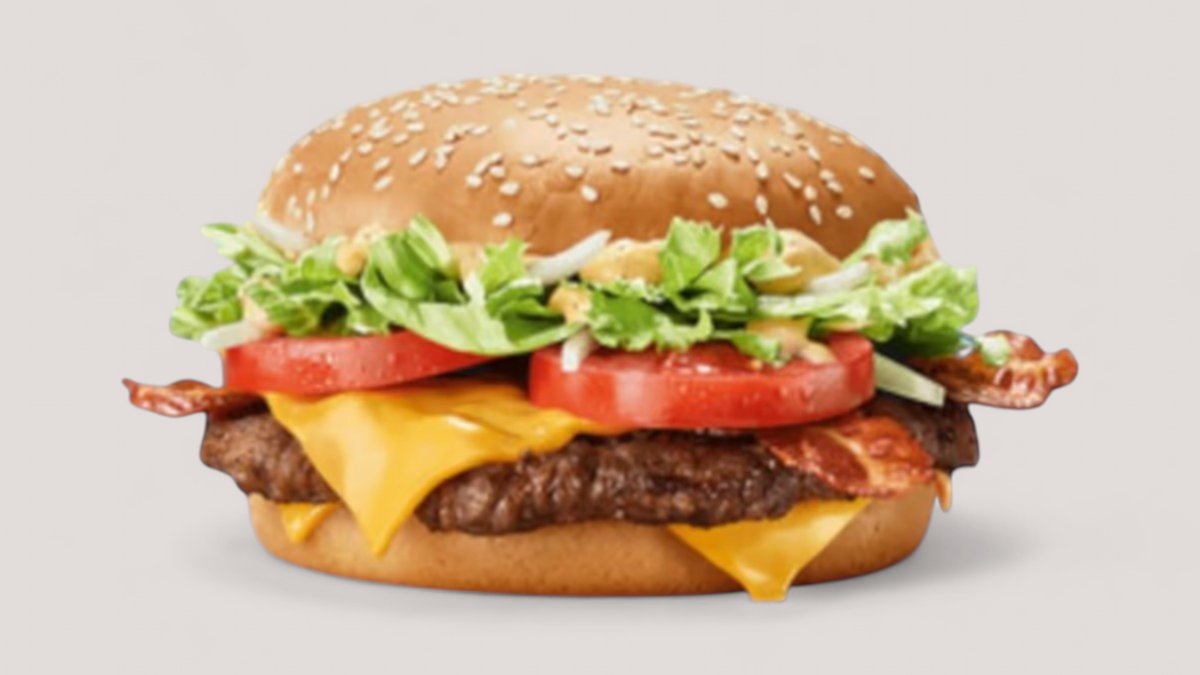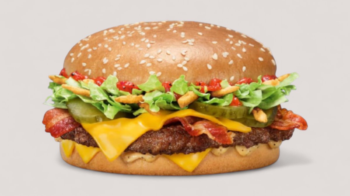 100 % saftiges Beef aus Deutschland, herzhafter Bacon, knackiger Salat, Tomaten und extra fufges Bun – alles getoppt mit rauchiger Tasty Sauce und zartschmelzendem Cheese. Lass deinen Gaumen nicht zu lange auf diesen Geschmacks-Giganten warten!