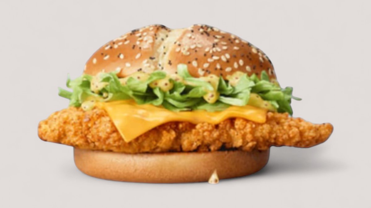 Unser lautestes Chicken! Der neue McCrispy® ist da. Das wortwörtlich herausragende Hähnchenbrustfiletstück mit einzigartigem Crisp-Faktor kommt im fluffigen Potato Bun, bestreut mit Mohn-Sesam-Mix. Belegt ist der Burger mit zartschmelzendem Cheese mit Cheddar, knackigem Eisbergsalat und cremiger Honig-Senf-Sauce