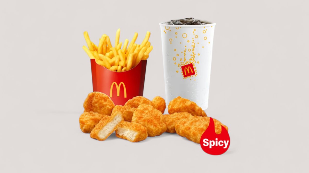 Davon kriegt man einfach nie genug.Und genau deswegen gibt’s für alle unersättlichen Chicken McNuggets® Fans ja auch unsere 9er Box mit 100% Hähnchenbrustfleisch. Aber Vorsicht! Wir haben den Verdacht: Gleich sind es nur noch acht ...