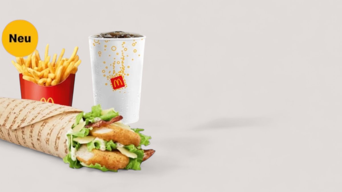 In dieser Weizentortilla dreht sich alles um das Mhmm … Probiere unseren neuen McWrap® Caesar Bacon mit saftigem Chicken, knusprigem Bacon, würzigem italienischem Hartkäse sowie Eisbergsalat und der verführerischen Caesar Sauce von McDonald´s®. Fast wie ein Caesar Salad to go!