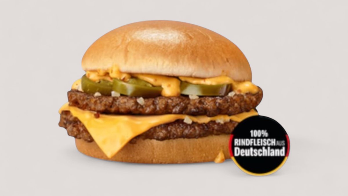 Doppelt Rindfleisch. Doppelt Cheese. Doppelte Freude: der Doppel-Cheeseburger! Zweimal saftiges Rindfleisch, Zwiebeln, Gurke, Ketchup, Senf und zweifach Cheese als zartschmelzendes Extra