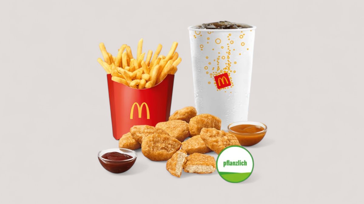 Du kriegst von unseren Nuggets einfach nicht genug? Dann probiere jetzt mal unsere neuen McPlant® Nuggets auf Basis von Weizen- und Erbsenprotein (kann in der Küche in Kontakt mit Hähnchenprodukten gekommen sein). Außen knusprig und innen herzhaft-saftig. Echter McDonald's Geschmack zum Teilen und Dippen. Beyond Meat® and the Beyond Meat logo are registered trademarks of Beyond Meat, Inc.