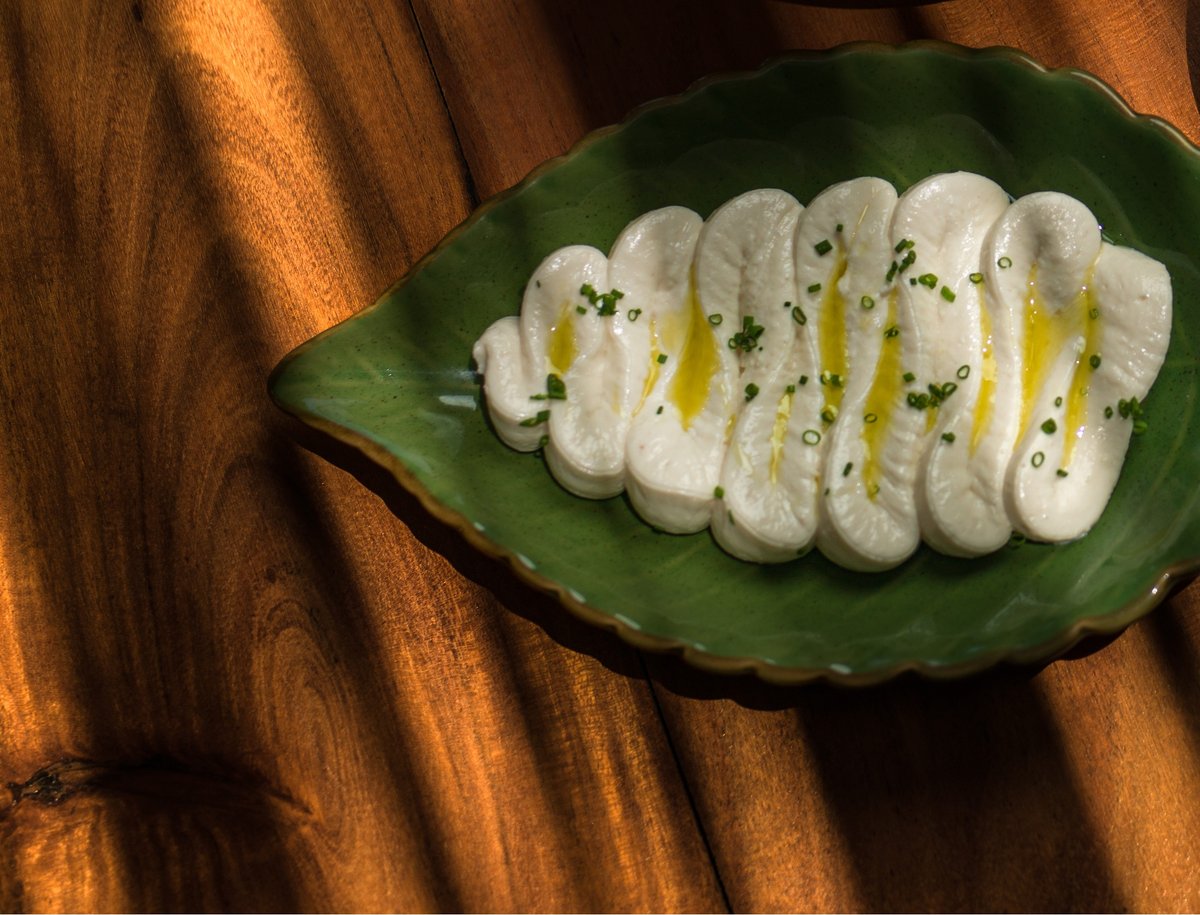 mushrooms, truffle cream, pecorino cheese, parsley, chives, truffle oil, xinomizithra, lemon zest
