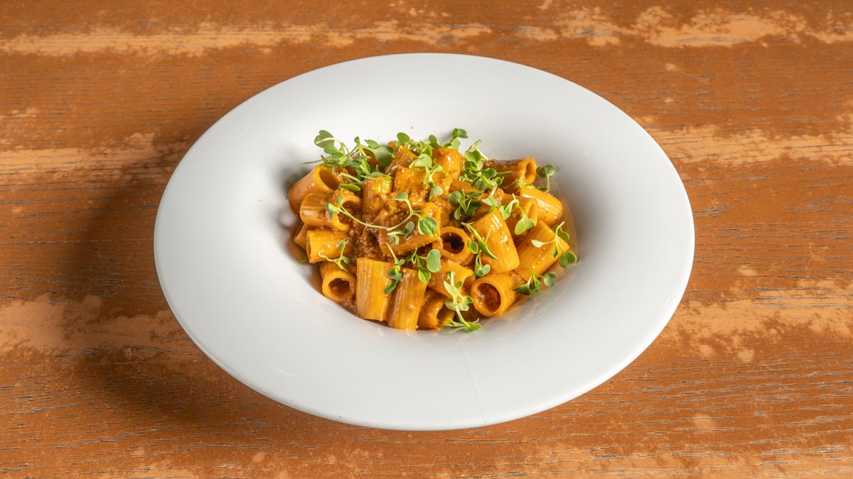 Beef Ribs, braised in their jus, paired with tomato orzo.