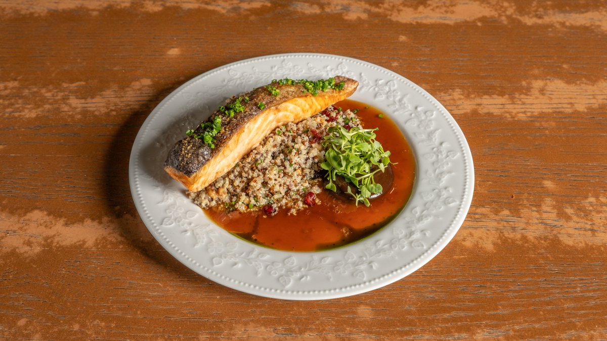 Quinoa, cranberries, beetroot puree, ginger dressing