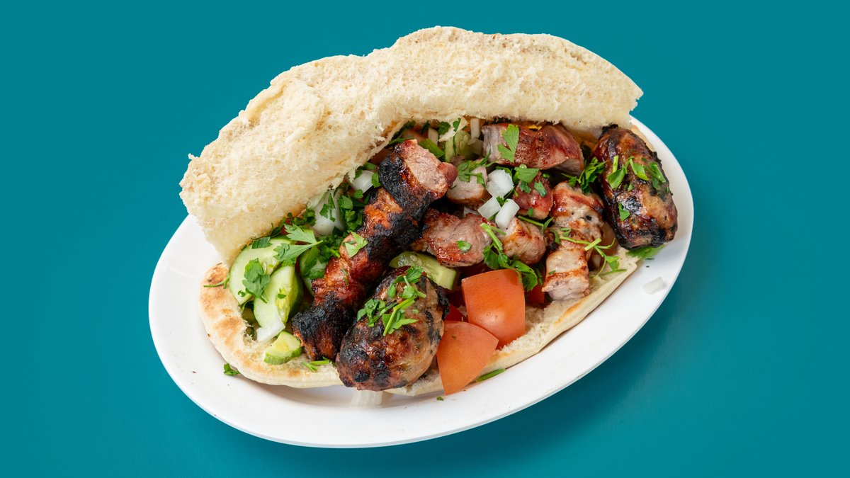 Mix Χοιρινό Σουβλάκι Και Σεφταλιά Σε Πίτα