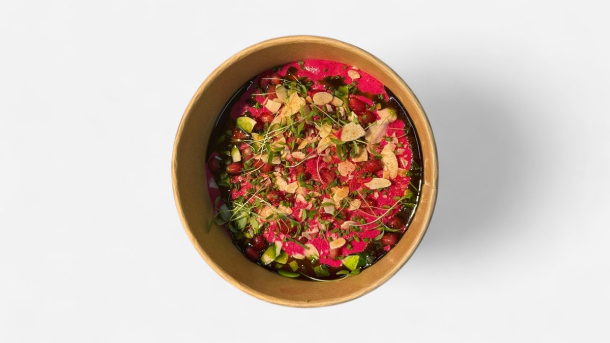Baby rocket, pomegranate, almond flakes, cherry tomatoes, tahini sauce, grilled halloumi.