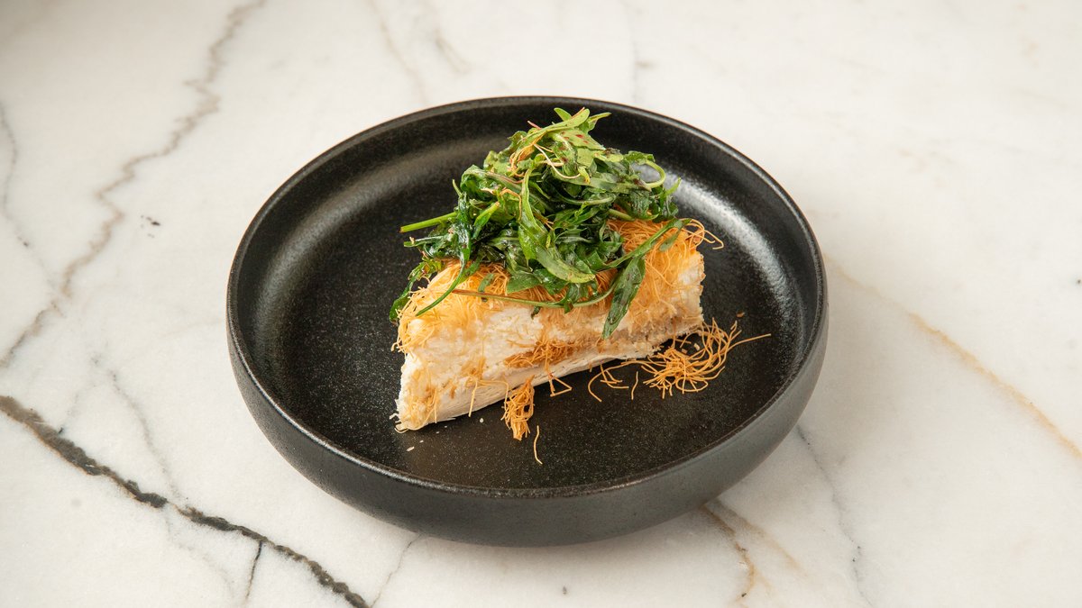 A symphony of rich cheeses enveloped in a golden, flaky pastry crust with kataifi. Симфония насыщенных сыров, заключённых в золотистую, слоёную корочку с катаифи.