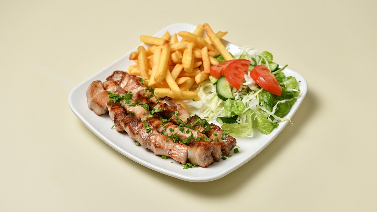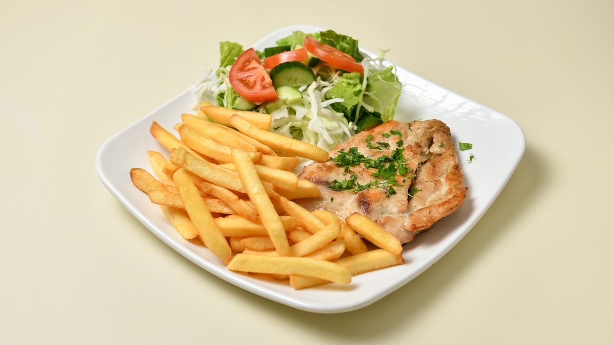 All portions served with salad and potatoes