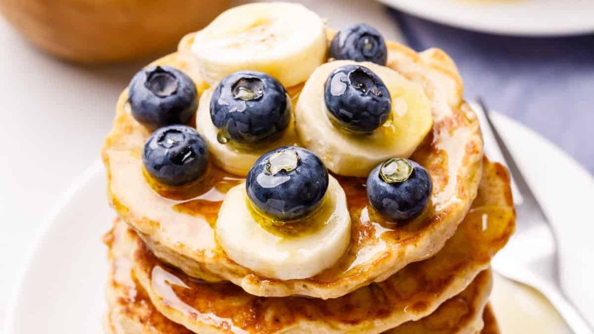 Protein Pancakes with Banana, Blueberries , Peanut Butter (Organic) , Honey , Coconut Flakes (Organic)