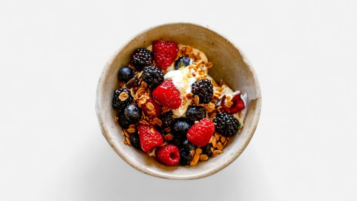 Low Fat Greek Yogurt, Gluten Free Oats, Strawberries, Blueberries, Mixed Berries (Frozen), Honey.
