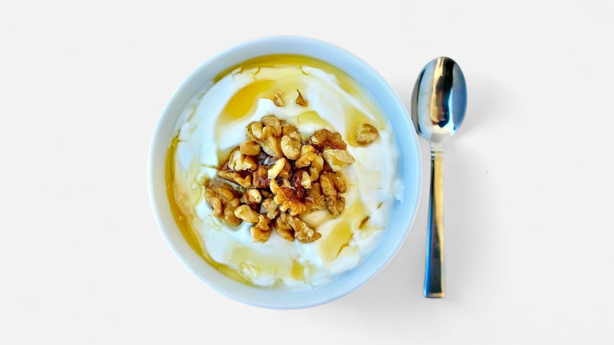 Low Fat Greek Yogurt With Walnuts, Honey & Cinnamon.