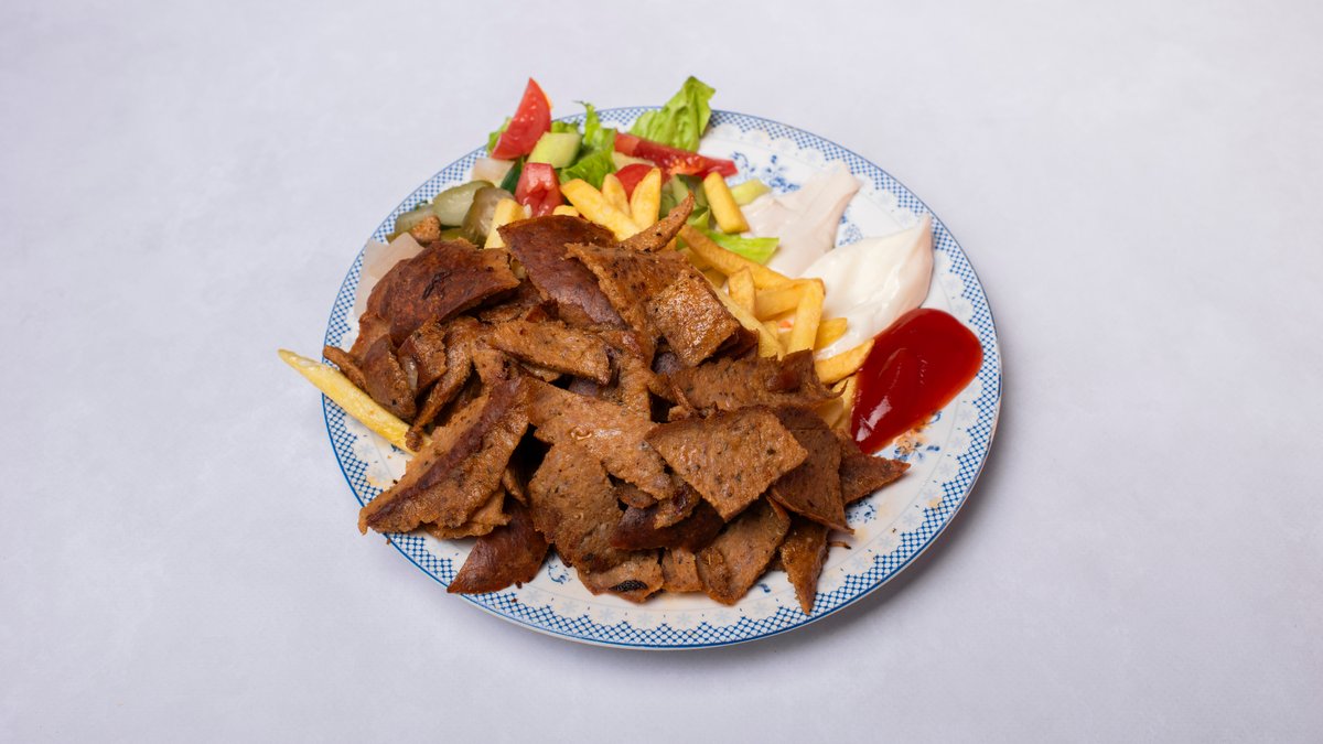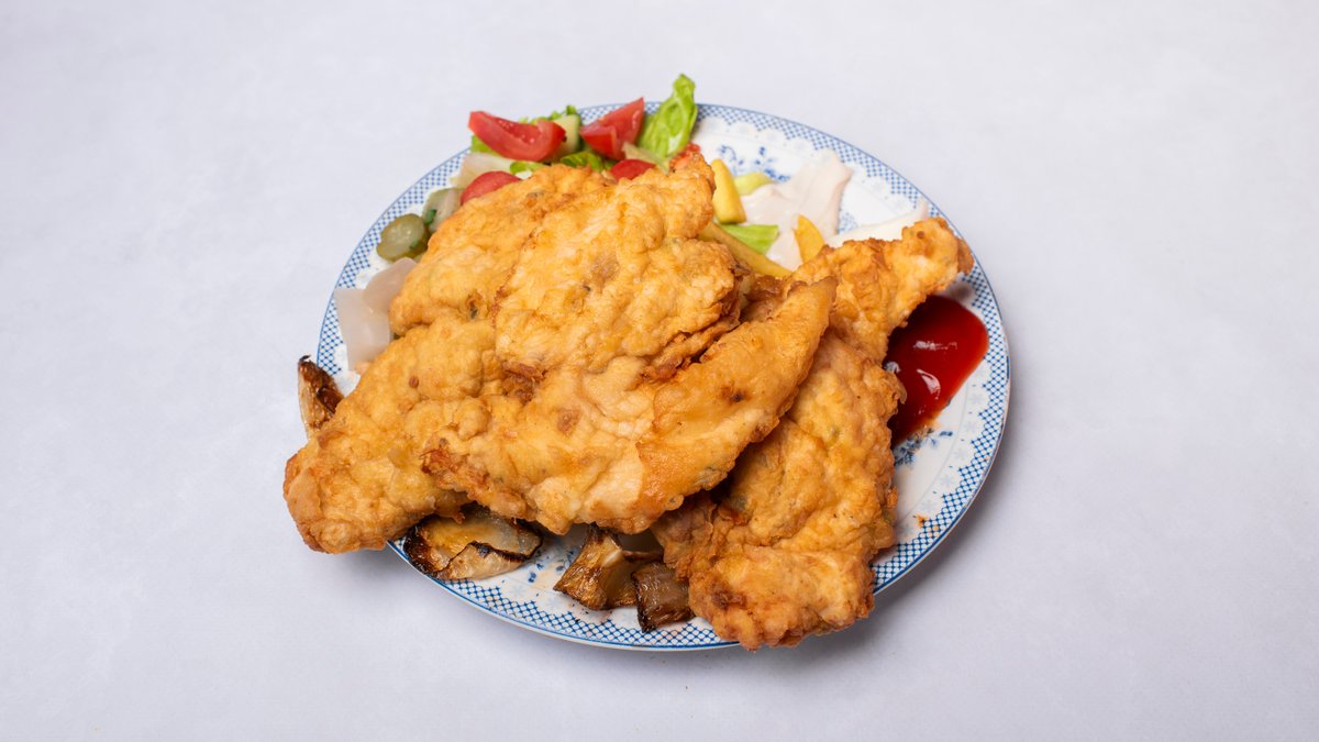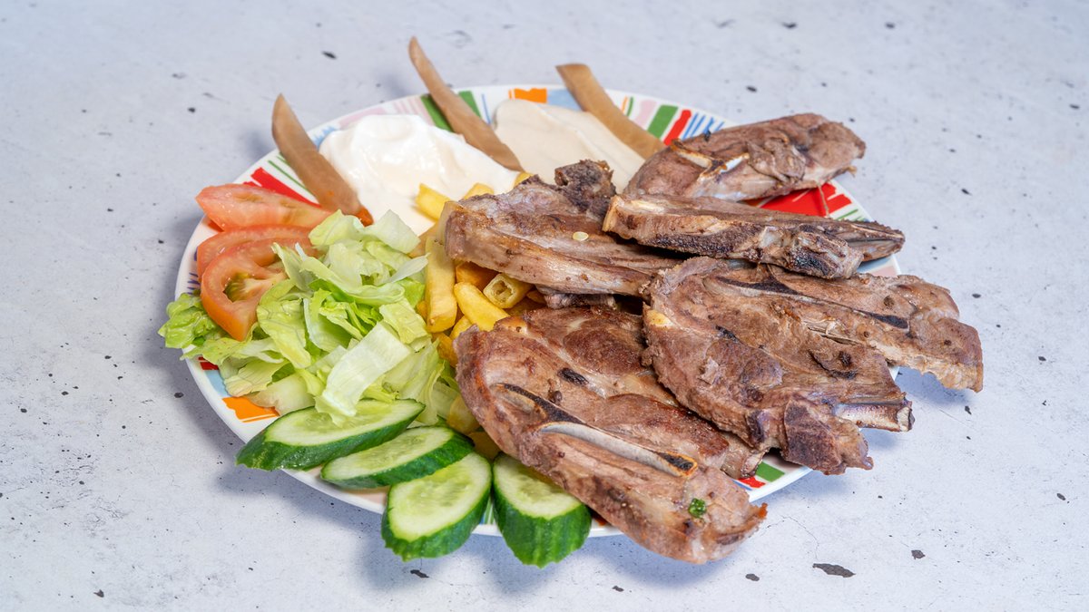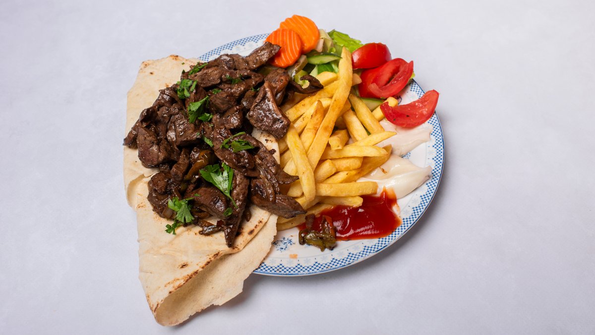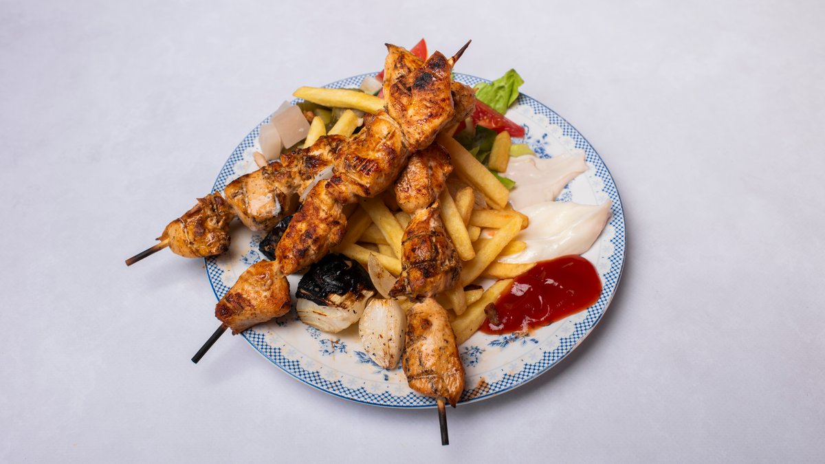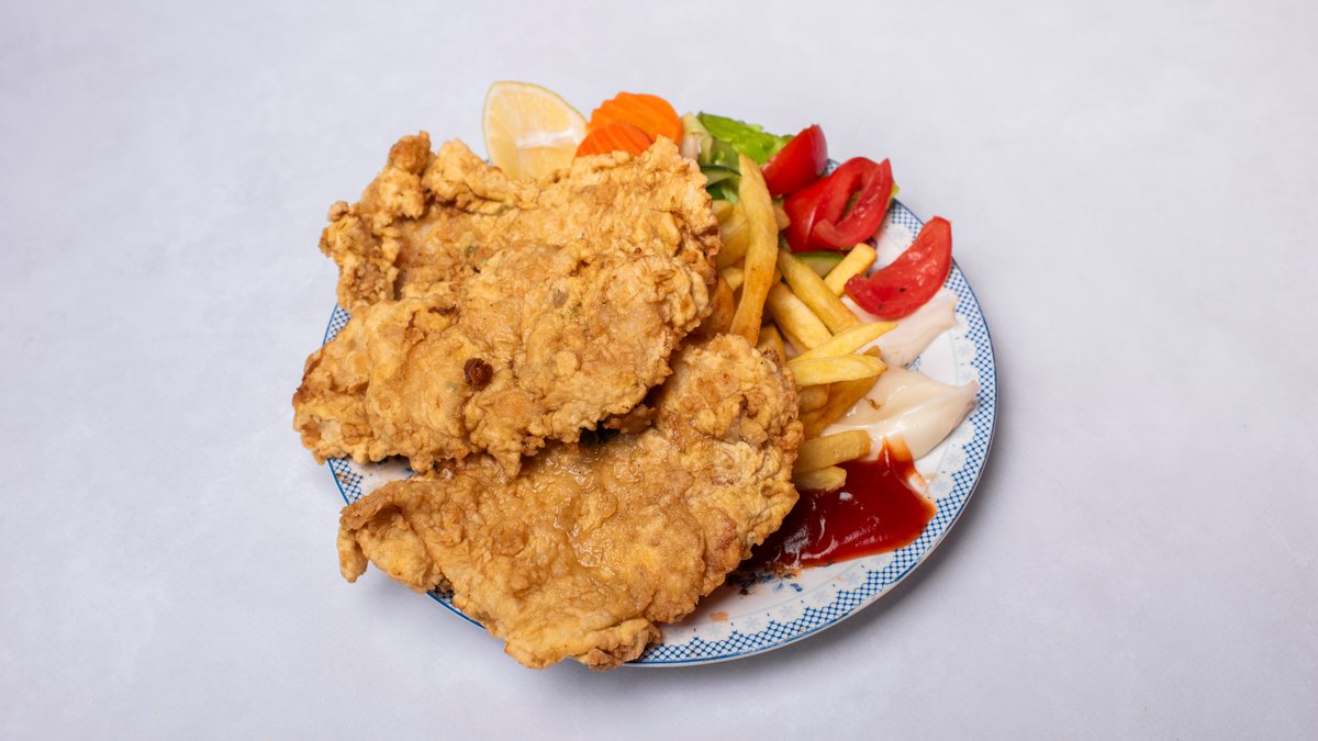 500 gr of fish. Served with fries or rice, salad, garlic sauce, tahini