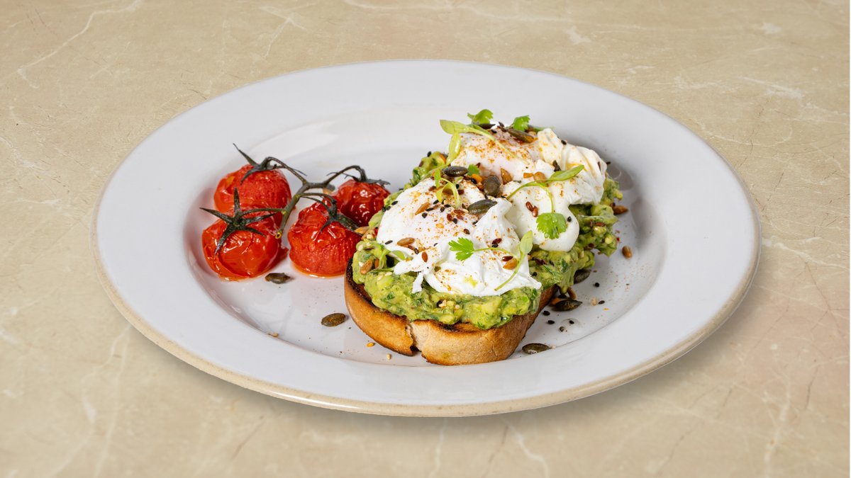 Herby avo, slow-roasted tomatoes, chilli, toasted seeds