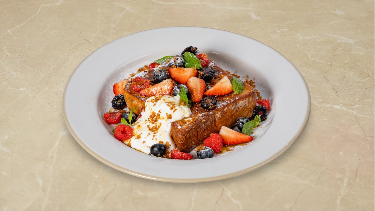 Stacked with fresh mixed berries, yoghurt & maple syrup