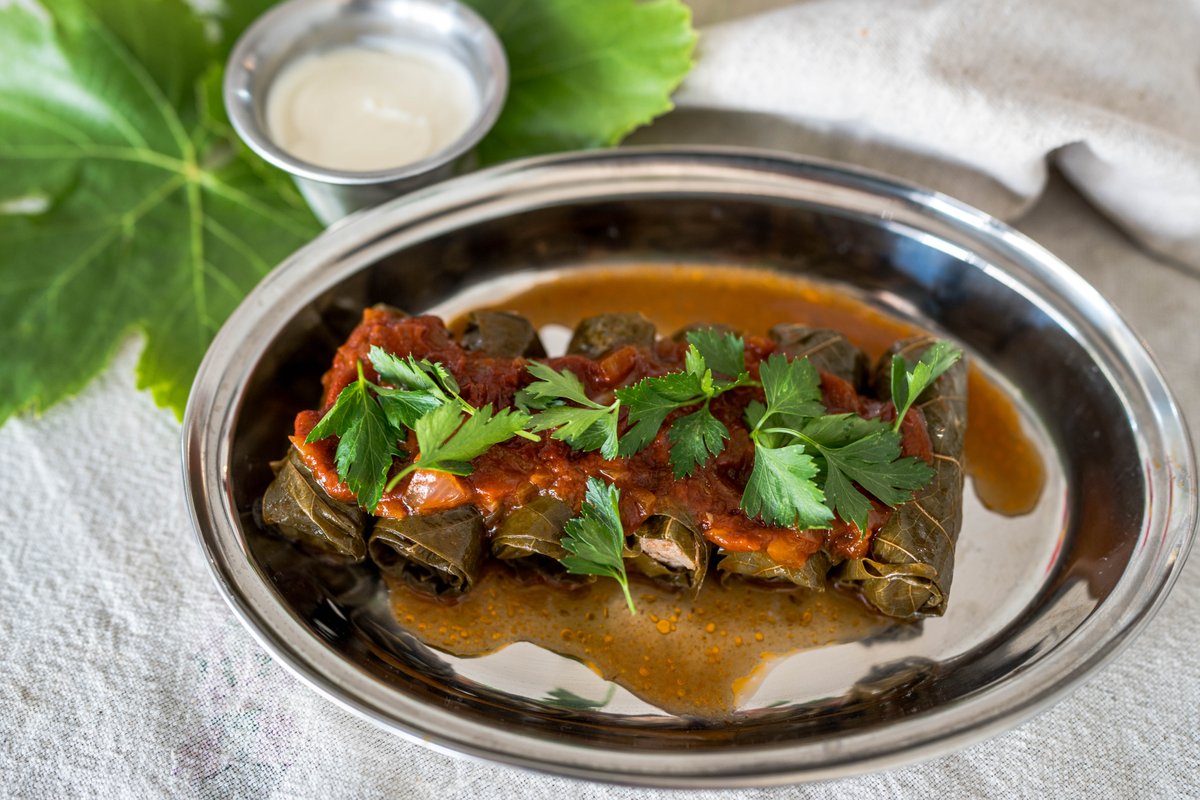Παραδοσιακός αρμένικος ντολμάς με φύλλα κουρκουμά, κιμά μοσχαρίσιο και κοτόπουλο, ρύζι, κρεμμύδι, βότανα, πιπεριά, μπαχαρικά