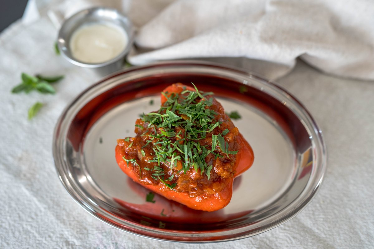 Τρυφερή πιπεριά γεμιστή με ζουμερό κιμά, ρύζι και μυρωδικά, μαγειρεμένη αργά σε σάλτσα ντομάτας