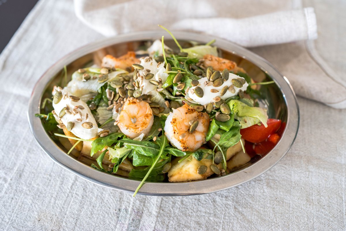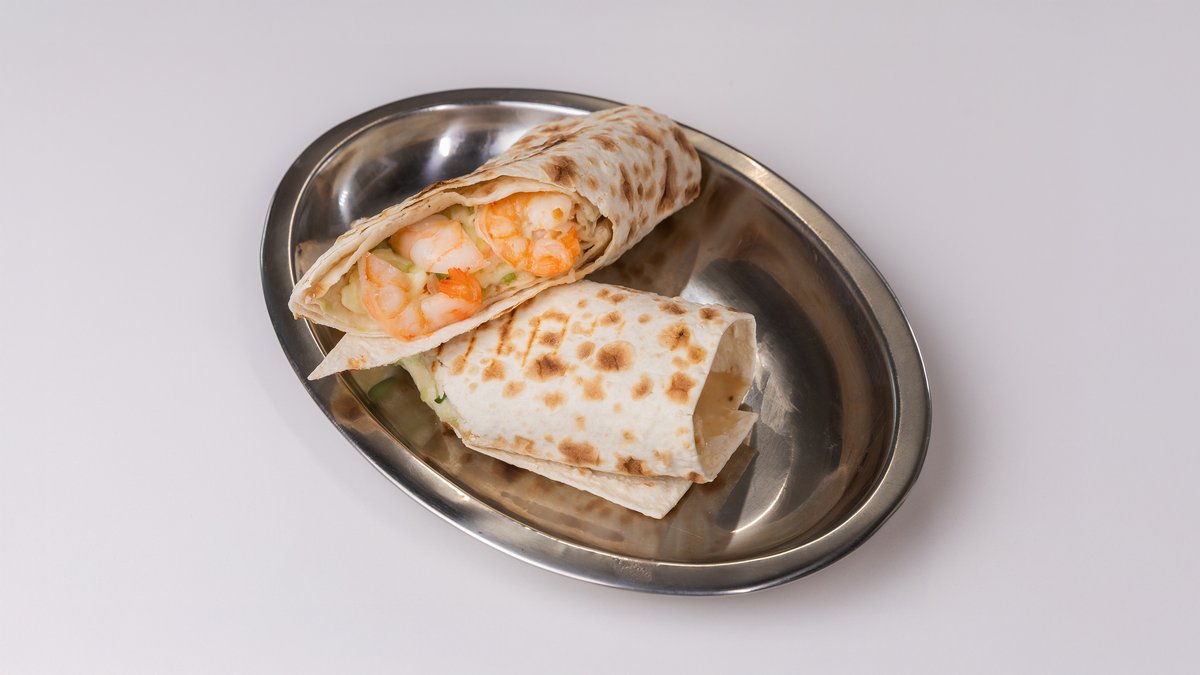 Αρμένικη λαβάς, γαρίδες, iceberg, αγγούρι, ντομάτα, μοτσαρέλα και τη μυστική μας σάλτσα