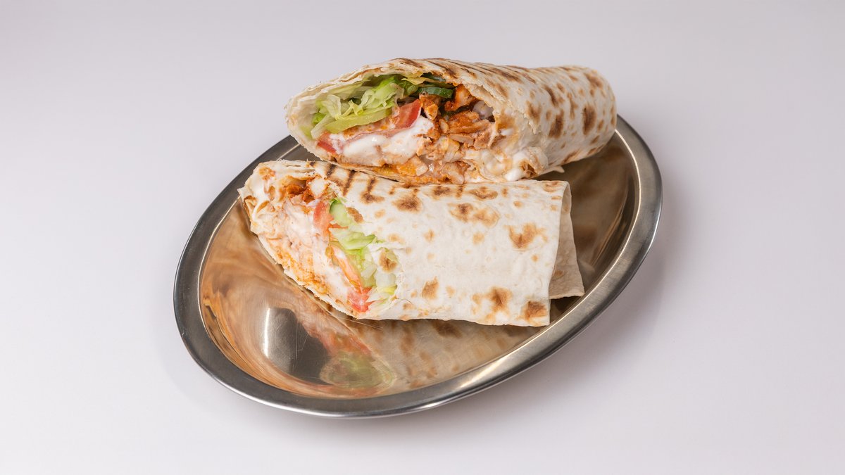 Our signature shawarma with Armenian lavash, chicken lulya , fresh salad, tomatoes and our homemade green sauce