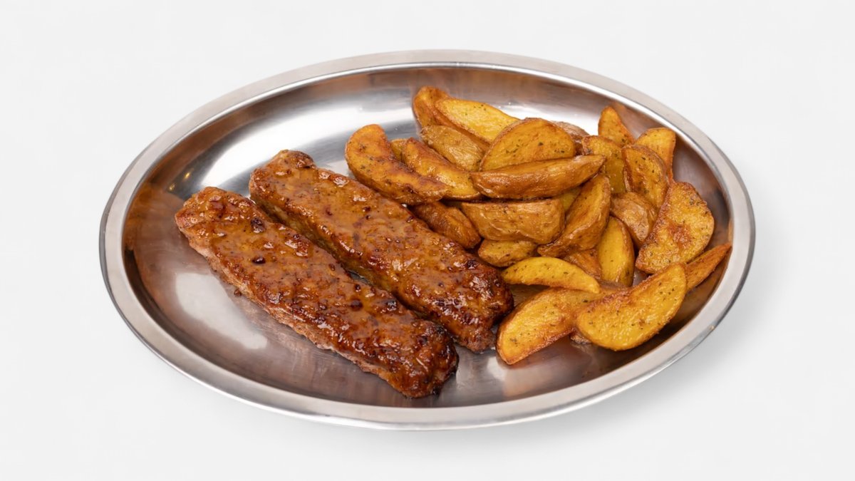 Our signature lulya shaped chicken cutlets. Served with Armenian lavash and potato wedges