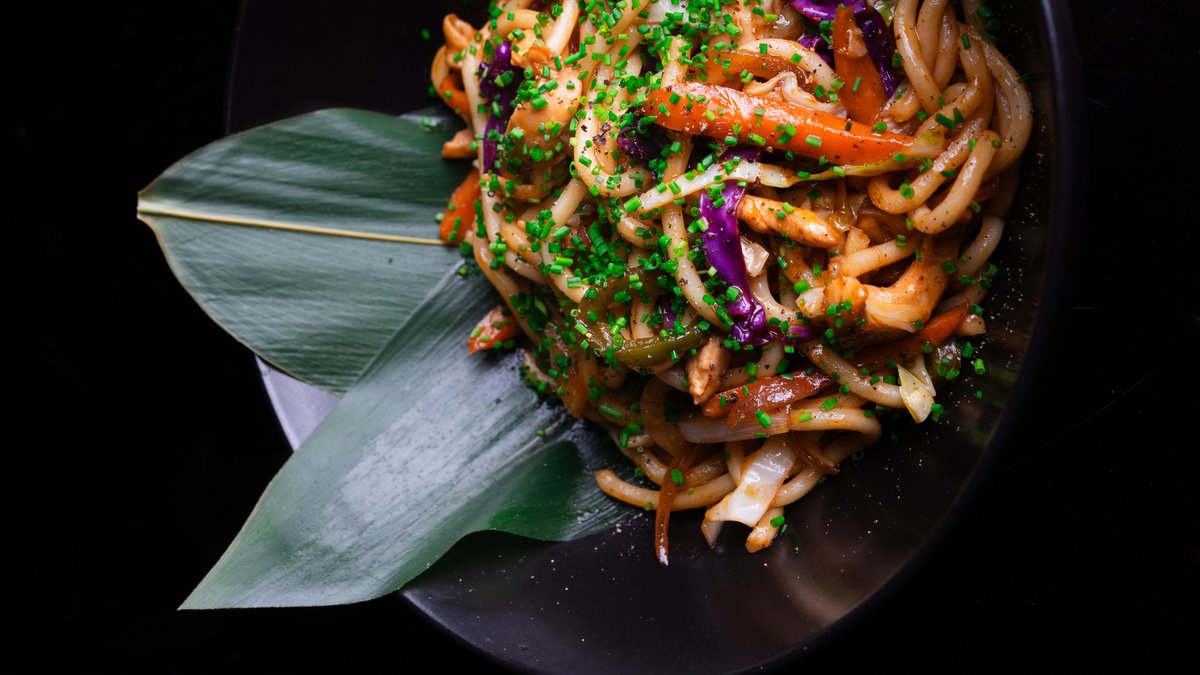 Freshly prepared Japanese thick wheat noodles, served with wok fried vegetables in soya and worcestershire sauce