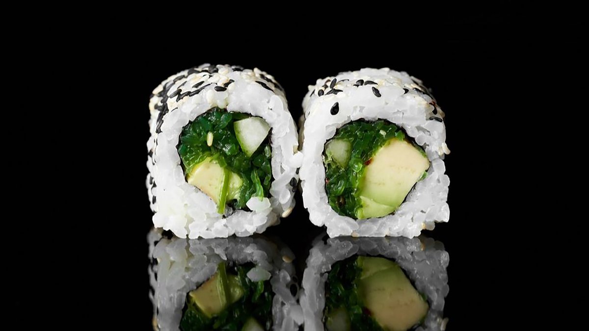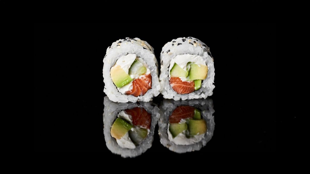 Nori, rice, salmon, Philadelphia cheese, avocado, cucumber