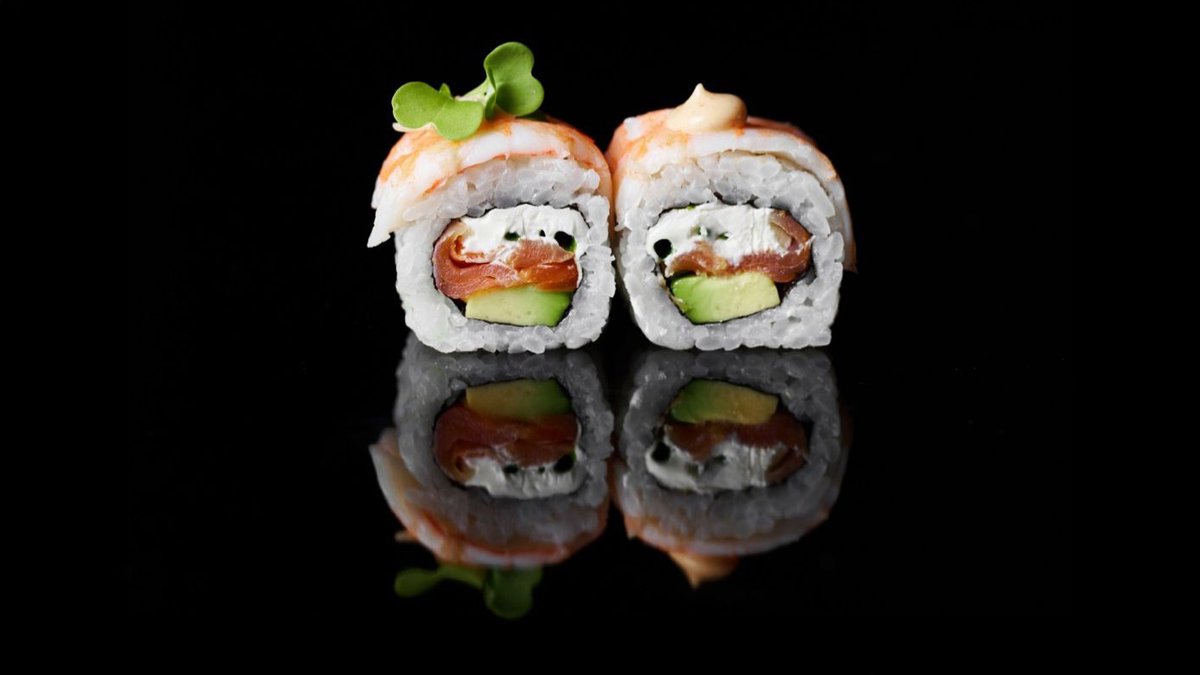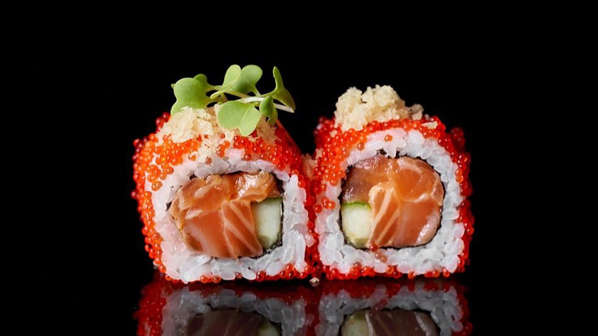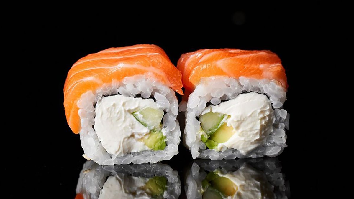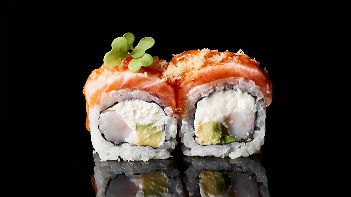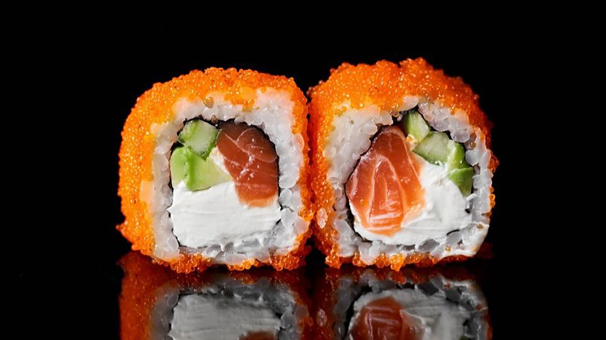 Nori, rice, smoked salmon, cucumber, avocado, Philadelphia cheese, Masago orange