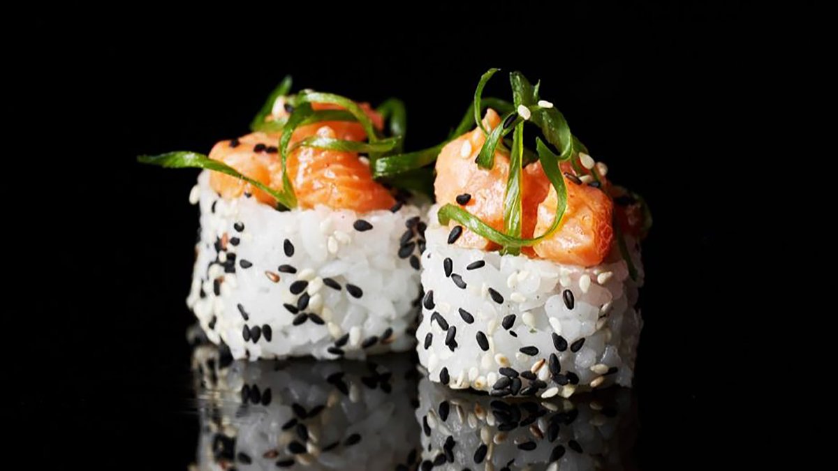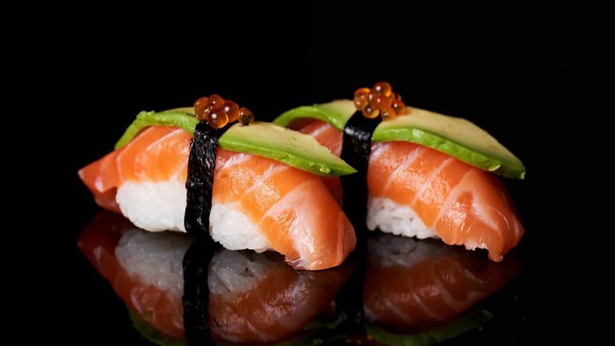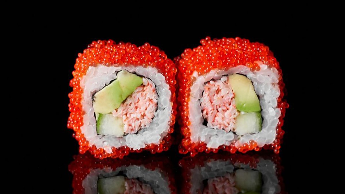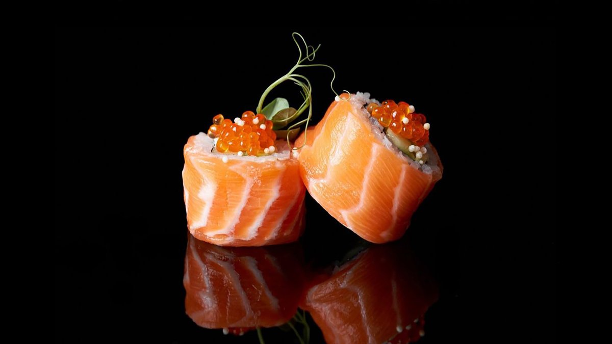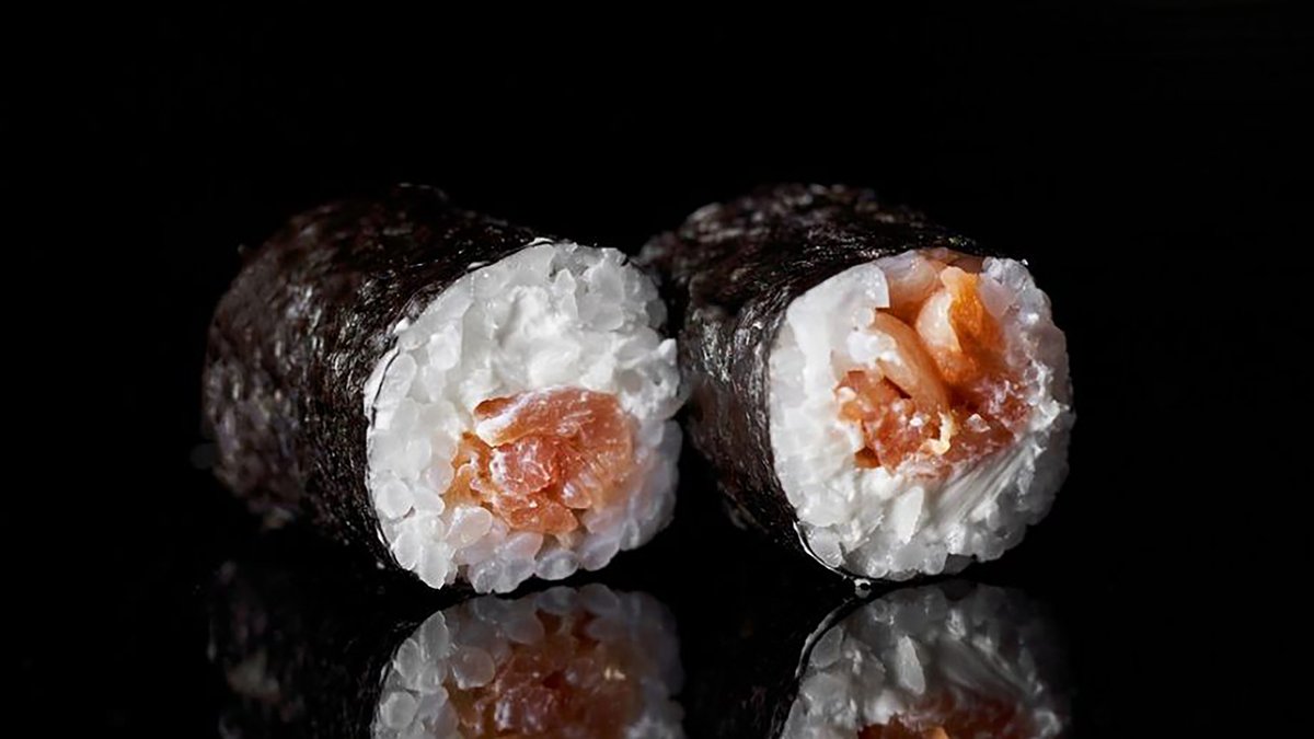 Nori, rice, smoked salmon, cucumber, avocado, Philadelphia cheese, Masago orange
