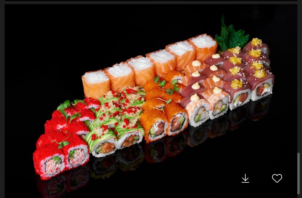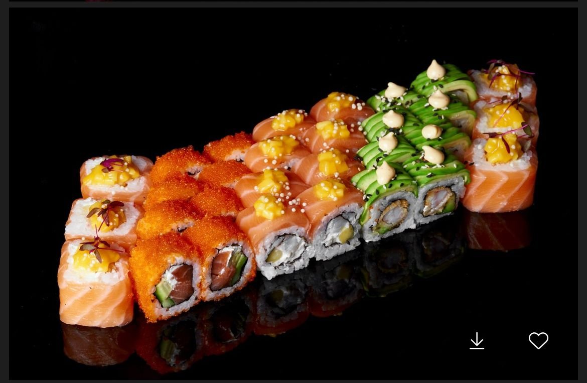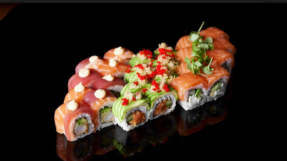 California roll 8 pcs Tanuki Salmon 8 pcs Philadelphia gold 8 pcs Crispy rainbow 8 pcs Sweet tuna maki 8 pcs Deluxe 6 pcs