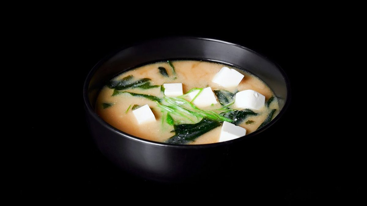 Tofu cheese, Wakame, spring onions, miso bouillon