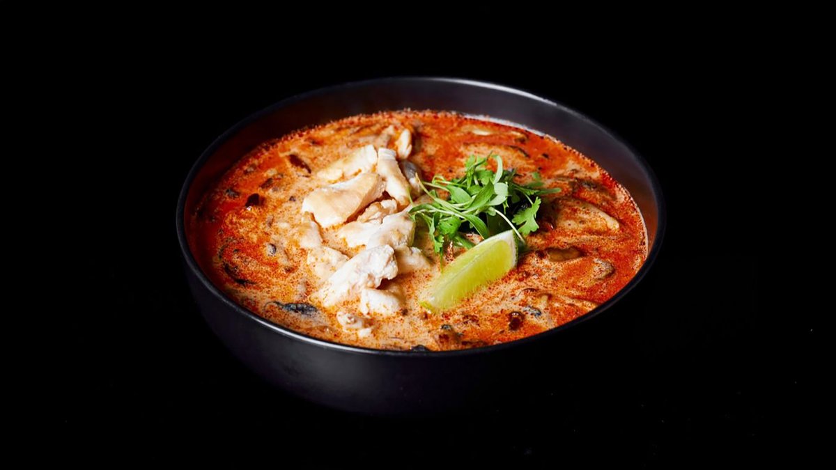 Chicken, Champignons, Muer mushrooms, oyster mushrooms, lime, Tom Yum bouillon