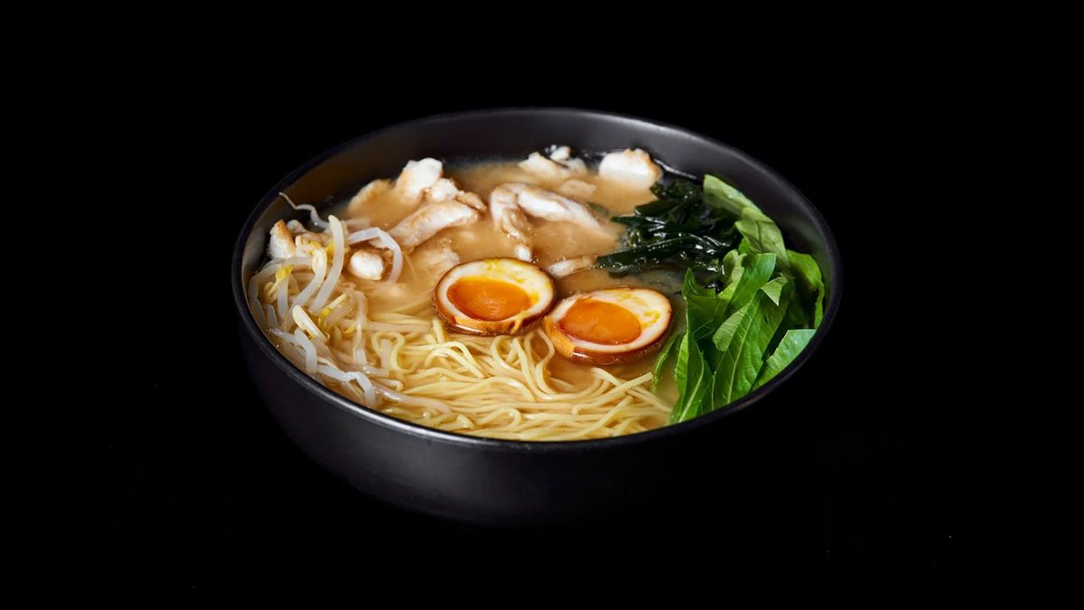 Chicken,Boiled egg, Bok choy salad, Mung bean sprouts, noodles, Chicken bouillon