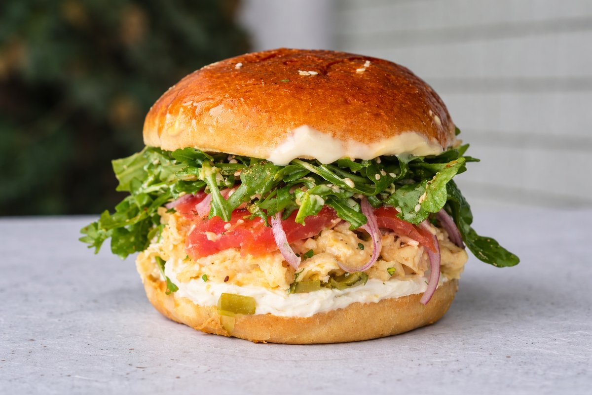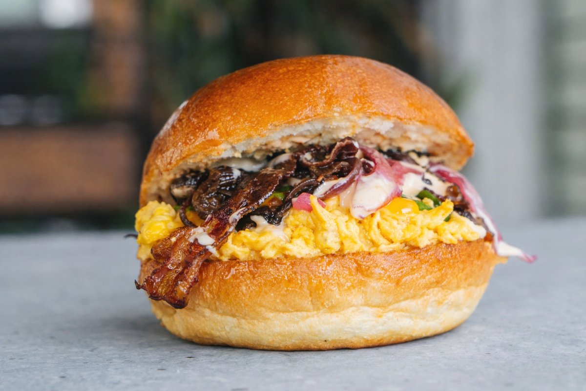 Brioche, scrambled eggs, bacon, cheese, avocado, pickles, caramelized onion, sriracha mayo