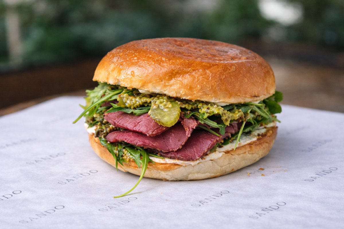 Cheeseburger sando, katsu sando, baked bacon guac and egg sando