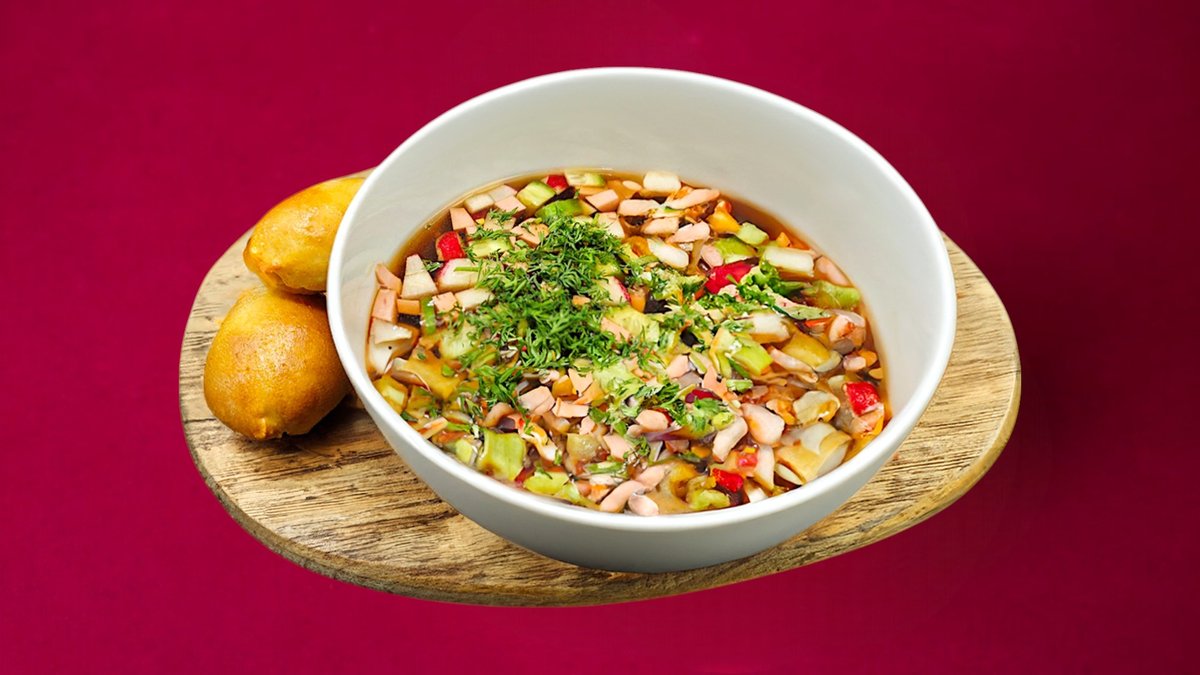 Σούπα Okroshka (Kvass) & Μίνι Κρεατόπιτα