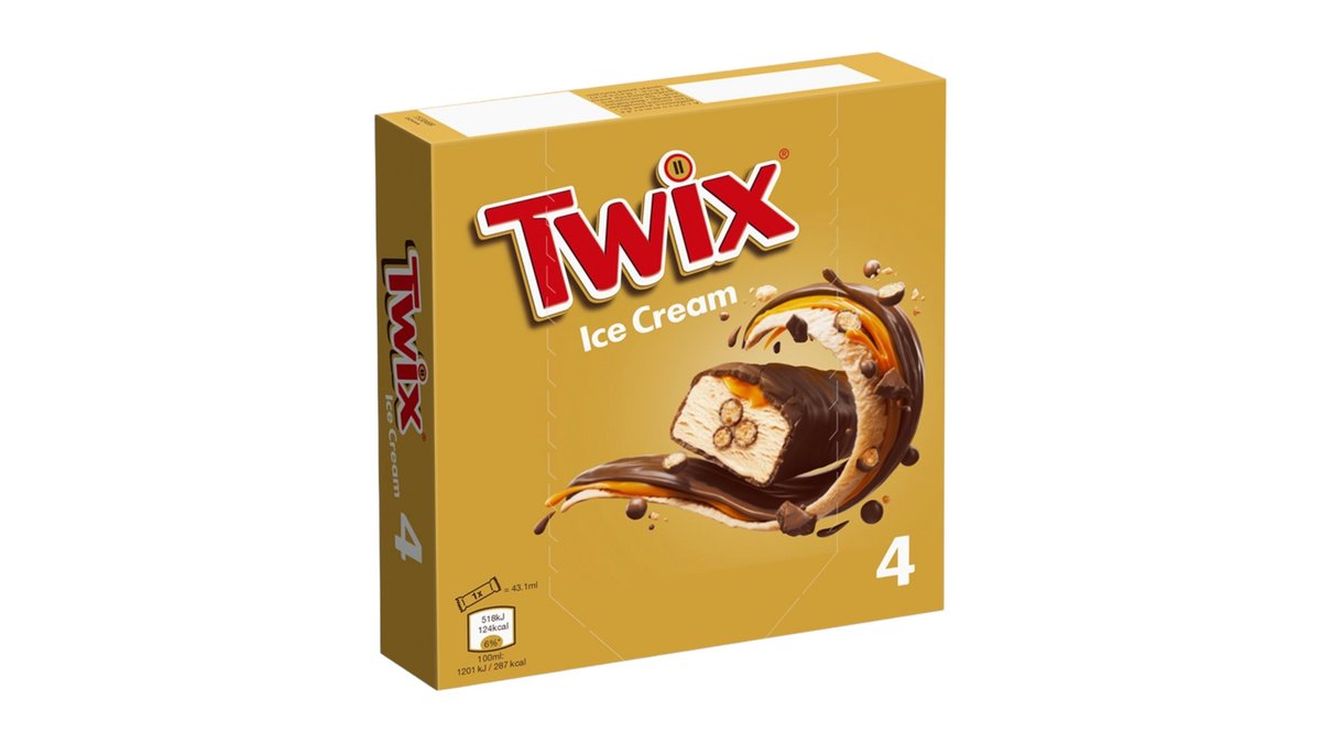 Twix Chocolate & Caramel Ice Cream, (4x43.1 g), 172.4 g