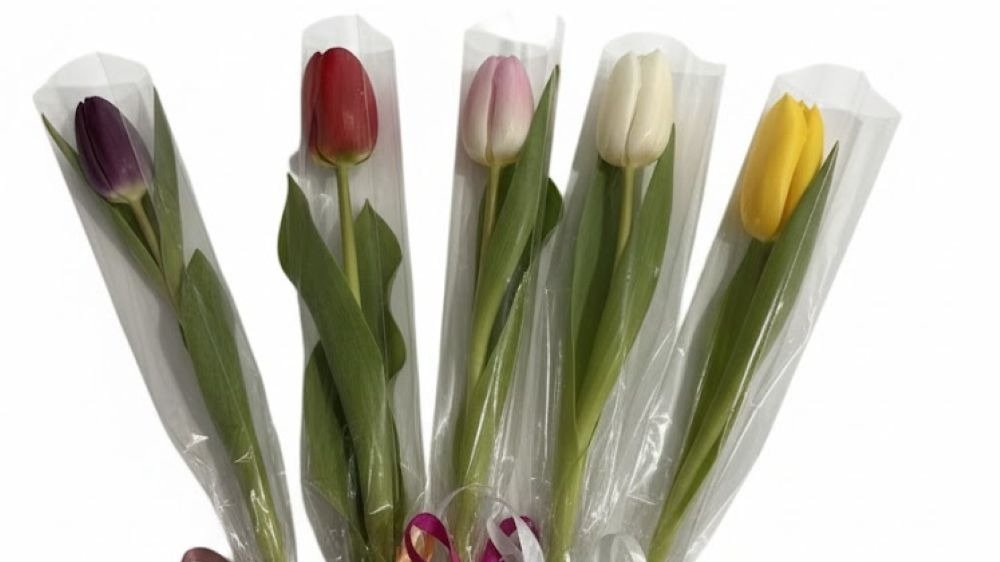 Single Tulip In Nailon With Ribbon