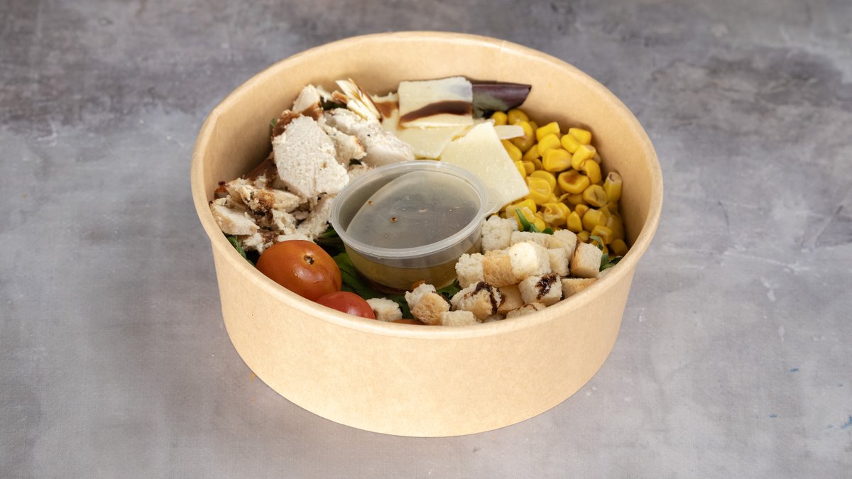 Tortilla, fresh chicken, pork bacon, lettuce, parmesan, ceasar sauce